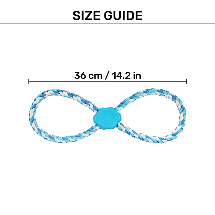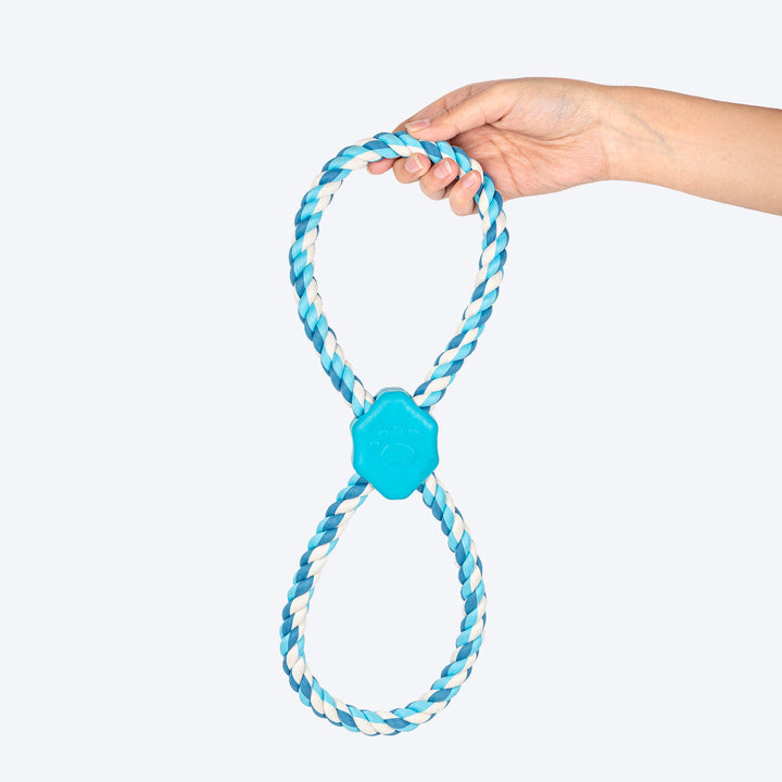 Fetch it, pull it, twist it, throw it or gnaw on it, Dash Dog Duo Looparoo Rope Toy is made for your pet to tug on for hours! Made using safe yarn, the toy features an infinity loop brought together with a rubber toy in the middle, making it ideal for active play, all the while being gentle on your pet's jaws. Gnawing on this toy also helps relieve your pet's stress and aids their dental health.