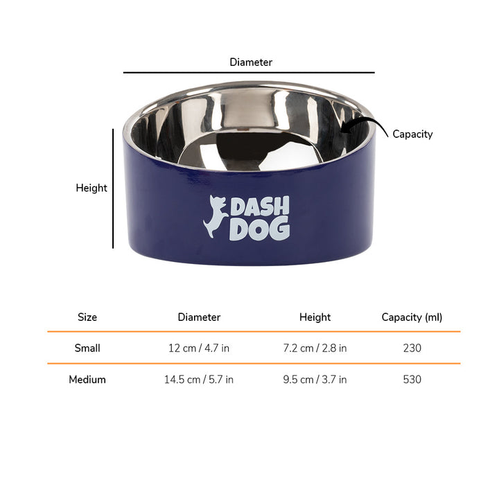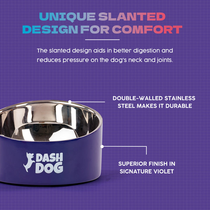 The double-wall stainless steel makes it tough and strong. The anti-skid silicone base makes it stay put, no matter what surface you keep it on. The slanted top is specially designed for flat faced dogs and dogs with long ears.