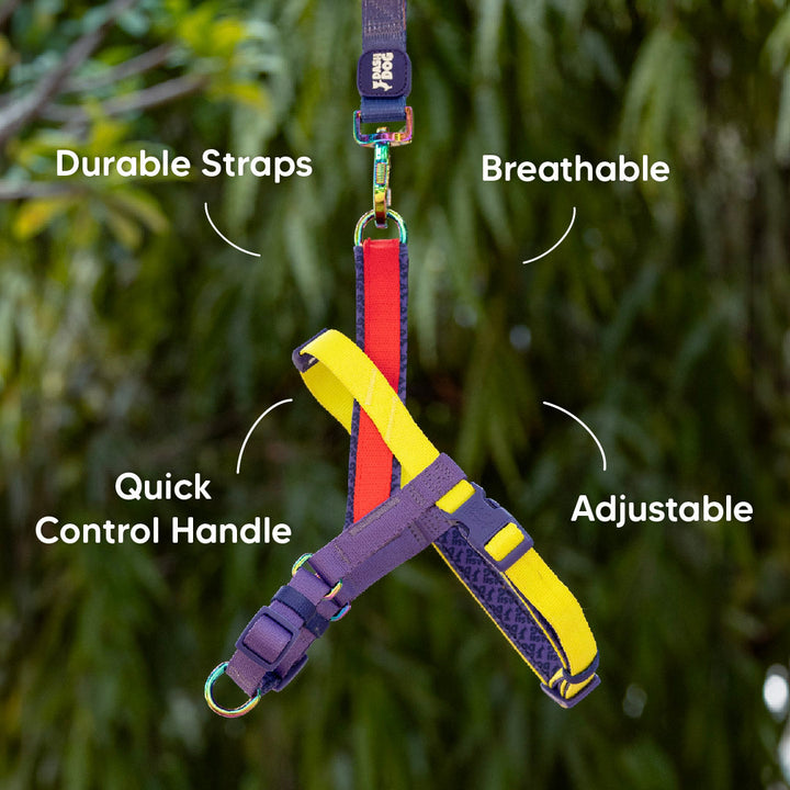 With a sturdy build for durability, a padded design for comfort, adjustable features for a better fit and a vibrant design, Dash Dog On-The-Go Harness is the ultimate partner-in-adventure! The durable nylon straps ensure a secure fit while the extra padding provides cushioning and comfort, reducing friction during walks or activities.