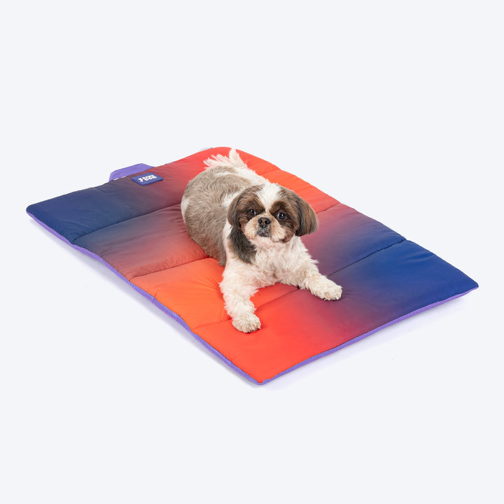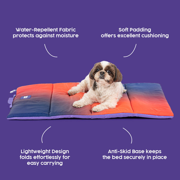 Meet the ultimate travel buddy for your dog €“ Dash Dog Sunset Fade Water Repellant Portable Pet Mat! This easy-to-carry, foldable mat is designed for both indoor and outdoor comfort, with a durable surface that resists spills and accidents. Lightweight yet cosy, the mat is padded to give your pet a soft resting spot, while the anti-skid base ensures it stays put on any surface. Whether you are off on a camping trip, enjoying a picnic, or simply unwinding at home, this mat provides a perfect, hassle-free spot for your pet to relax and recharge.
