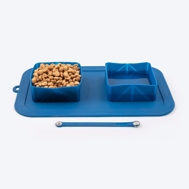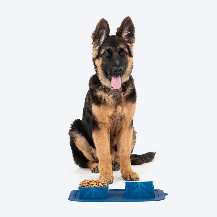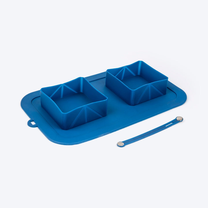 Dash Dog Travel Foldable Double Diner For Dog - Blue