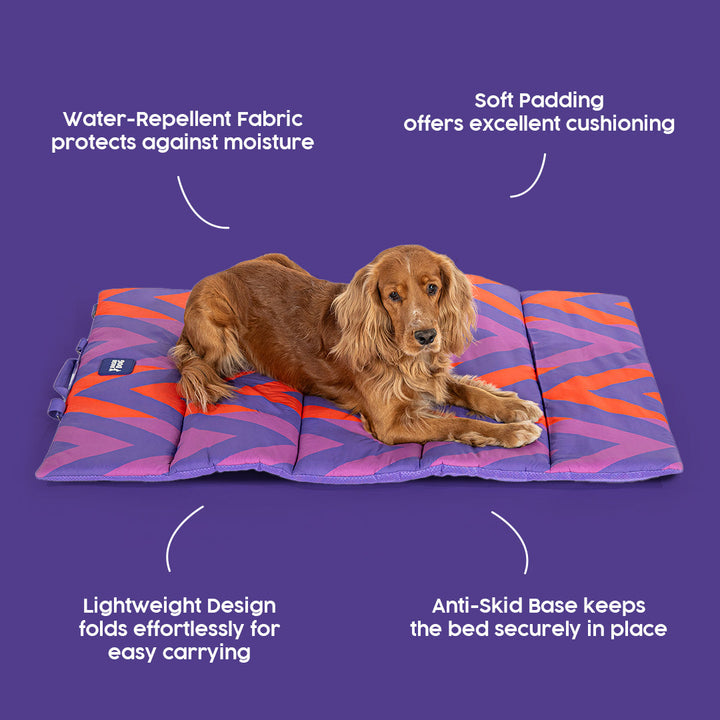 Dash Dog Zig Zaggers Water Repellent Portable Mat For Dog - Orange & Purple