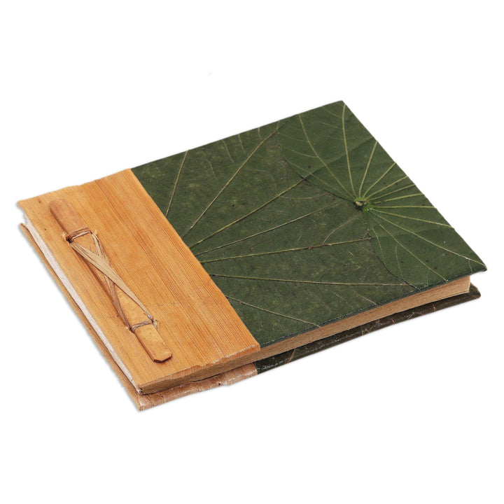 The earthy good looks of this petite notebook come from its natural sources. The small journal is crafted from olive green kupu-kupu leaves (also known as Butterfly Tree), rice straw paper, agel grass cord, and card stock. With 40 blank pages, it is the perfect size to take along on a journey to record your experiences and memories. The notebook is part of the NOVICA Indonesia Market Picks collection.