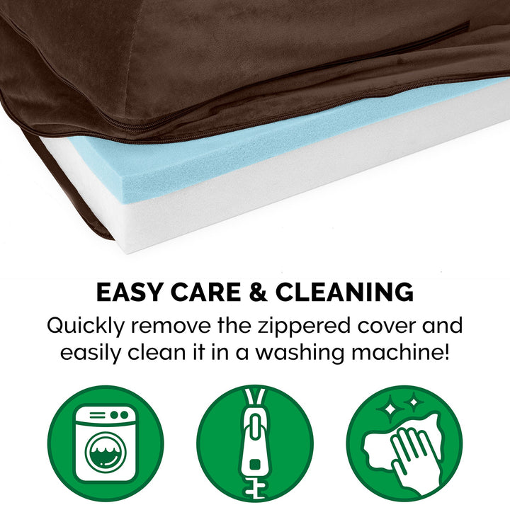 The medical-grade foam core includes a layered orthopedic foam core topped with gel-infused memory foam. Micro gel beads help keep the bed cooler while memory foam conforms to your pet's shape providing superior support of joints and pressure points. Gel foam has cooling properties reducing the sleeping surface by 1 or 2 degrees, wickng heat away from your pet. The superior support provided by both foam cores will help your pet reach a deeper, more restorative rest for your pet's health.