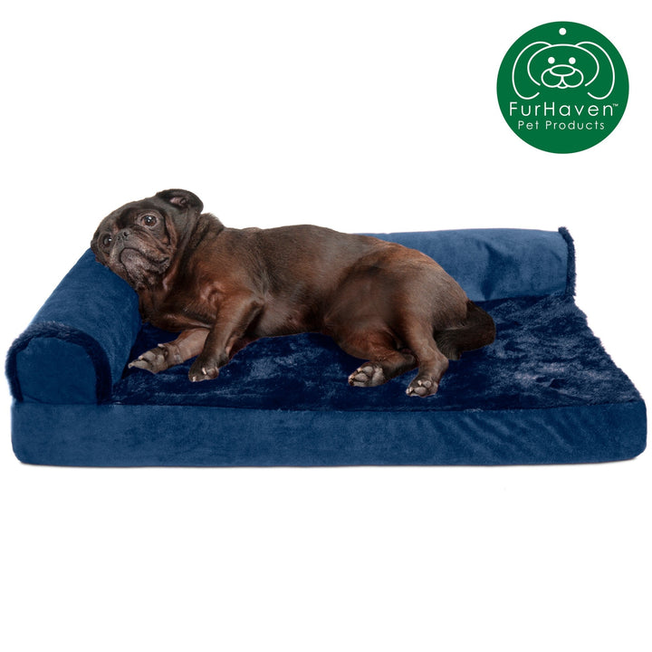 Pamper your pet with a new FurHaven Deluxe Chaise Lounge! A luxuriously soft plush sleep surface is complemented by velvet covered bolsters and gusset. Ultra plush faux fur provides a snuggly soft sleep surface and trims the edges of the bolster for a chic flair.