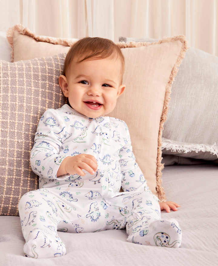 - Roar into bedtime with our newborn baby dino pajamas that come in twos! The easy zip front, seasonless bamboo and organic fabric, and adventurous dinosaurs make bedtime a prehistoric adventure!