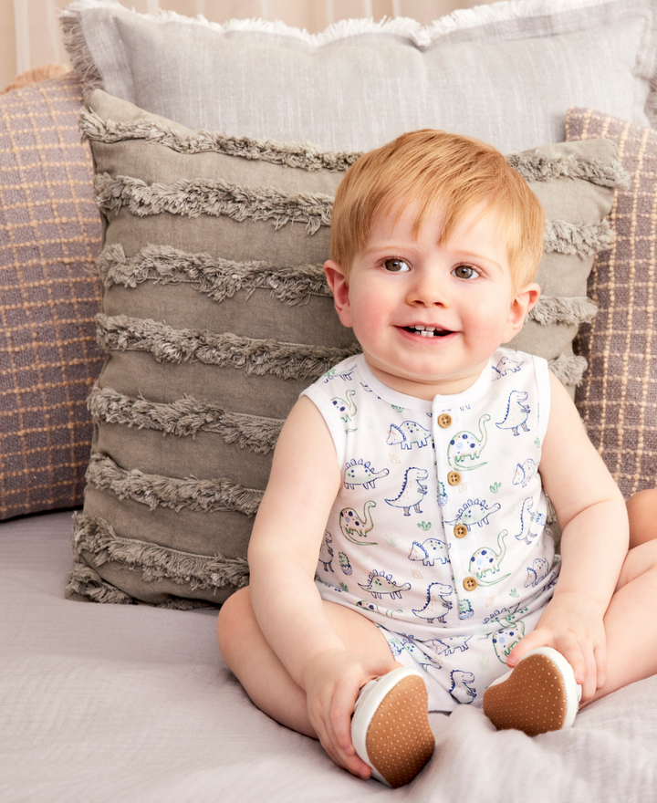 - Your little dinosaurus-rex will be comfy and cozy in bamboo and organic fabric with our newborn babys' rompers that come in twos!