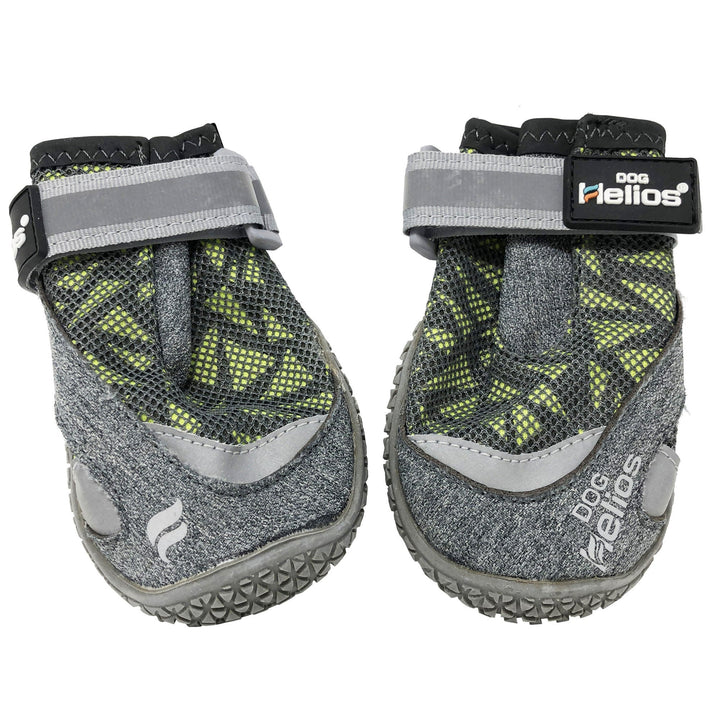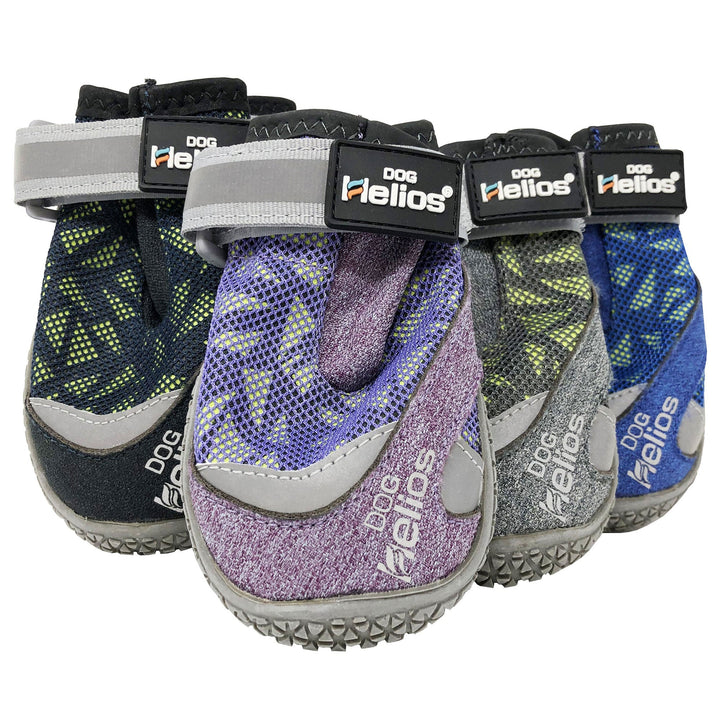 The Dog Helios 'Surface' Premium Grip Performance Dog Shoes are built and designed for premium Mobility and Breathability. These sporty dog sneakers feature a Micro-Mesh, Suede and Nylon outershell that are Durable, Flexible, Breathable and Water-Resistant with added reflective material by the toe area. Inner lined with both Fleece and Neoprene. The bottom sole features strategic Rubberized micro-grips for Premium traction perfect for protection against the snow, icy terrain, hiking and hot asphalt. Geared with hook-and-loop straps that are further adjustable and reflective. These shoes are also great when worn during training or any extreme outdoor events and are built-to-last. Available in Multiple Sizes and Colors.