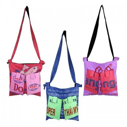 Reduce, reuse, recycle...and reinvent the boring market bag! Made with 100% recycled rice and feed bags from Southeast Asia, it makes as much a conversation piece as it does an earth-conscious way to carry your everyday essentials.