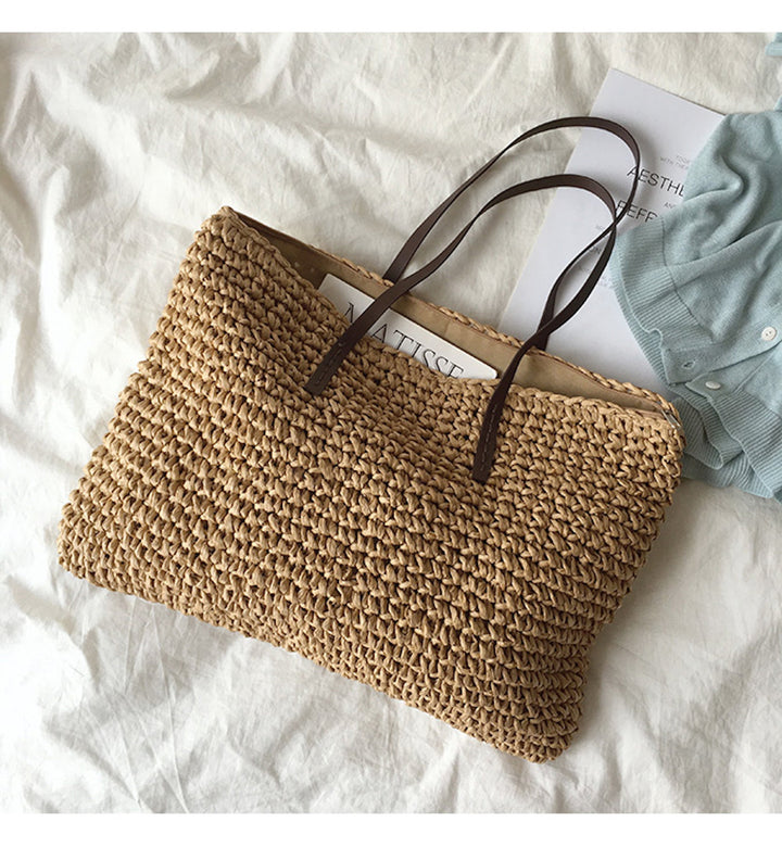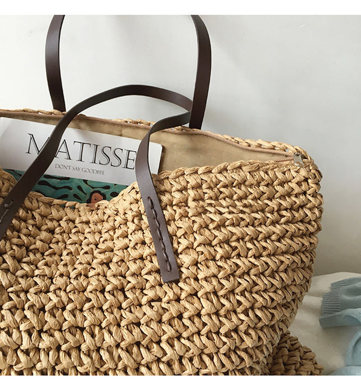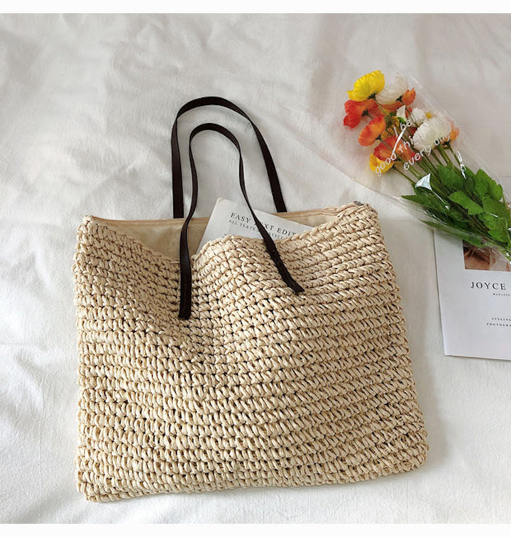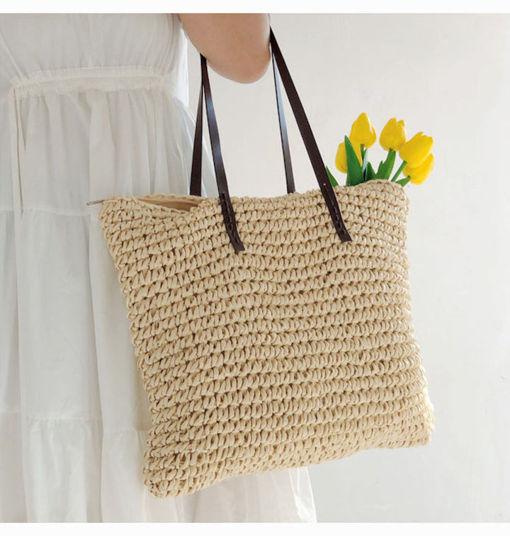 Large Straw Woven Tote Bag, Summer Bag, Everyday Shoulder Bag, Beach Bag