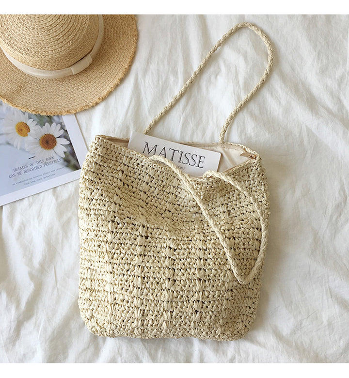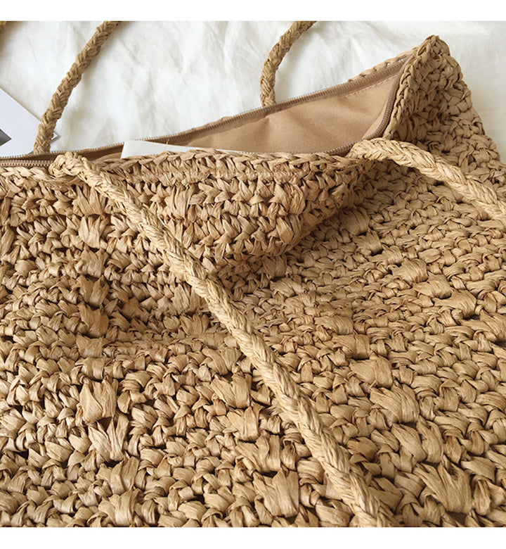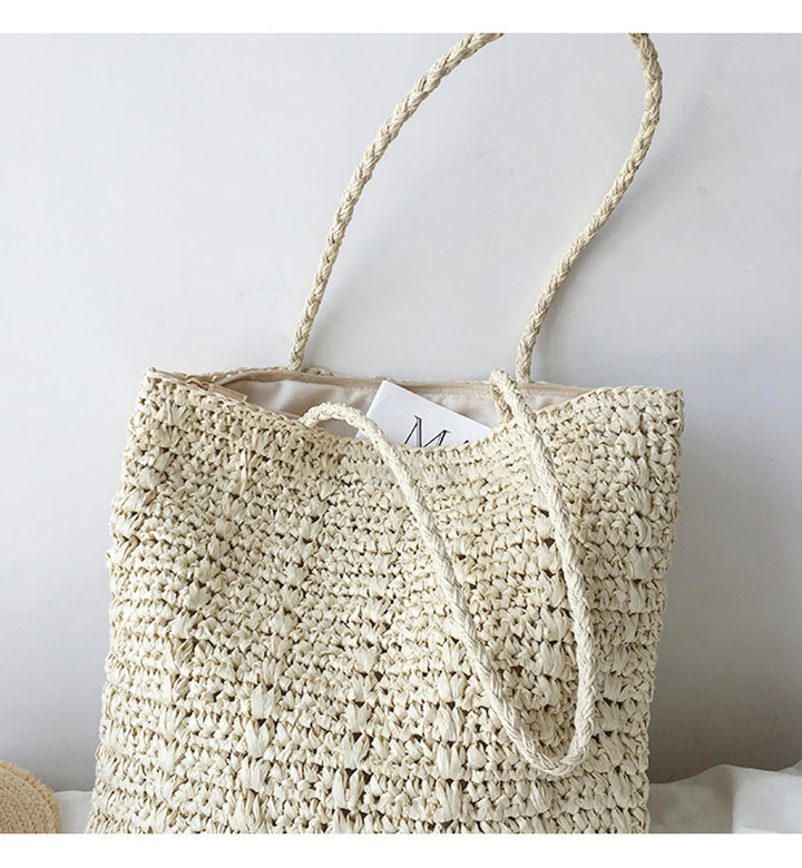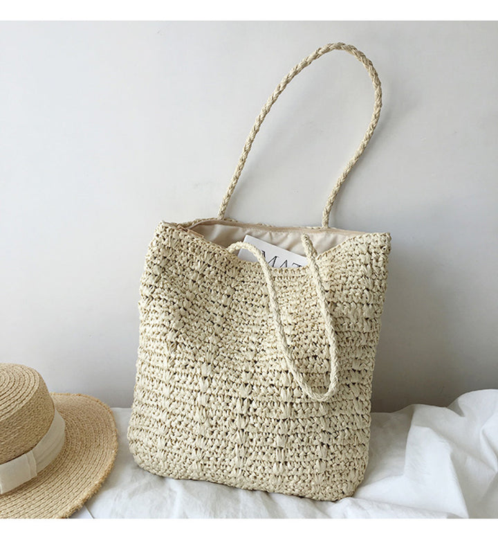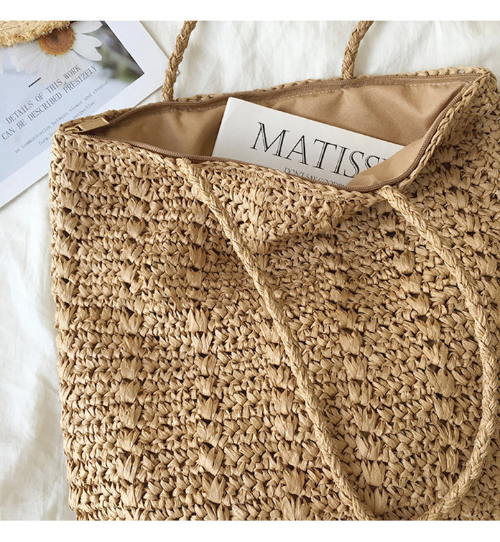 Straw Woven Tote Bag, Retro Vibes, Summer Bag, Everyday Shoulder Bag, Beach Bag