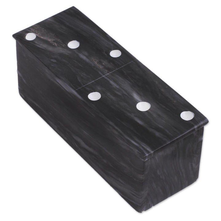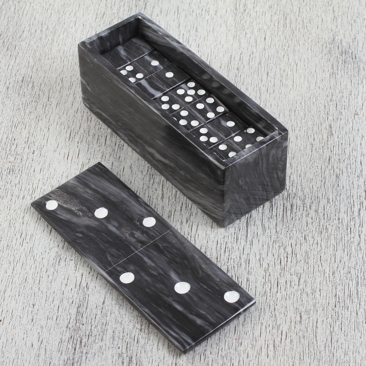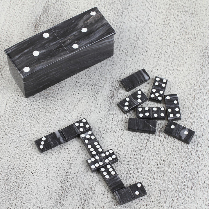 The game that blends chance and skill in exciting ways, dominoes make a fun and decorative addition to your home with this set from Mexico. The talented artisans of the Sierra Family work with natural dark grey onyx to create this set. Crafted by hand, each piece arrives within a complementary storage box shaped like a large domino.