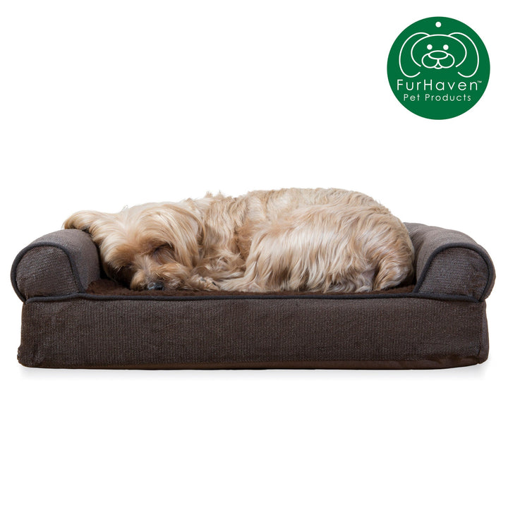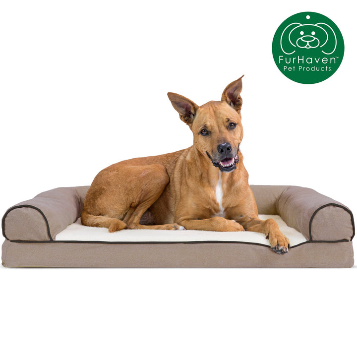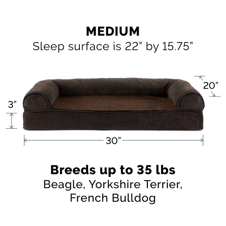 Finally, a solution for your arthritic pets pain! This FurHaven Faux Fleece & Chenille Soft Woven Sofa Bed has a soft, faux fleece sleep surface providing your pet comfort while the orthopedic foam base supports your dog's joints and pressure points. The sofa bed has three walls to give your pup a variety of positions to lay in while remaining comfortable. Your best friend deserves a good night's rest and now, it's possible.