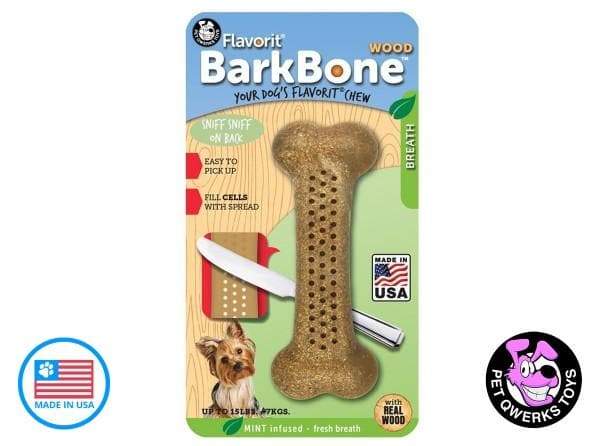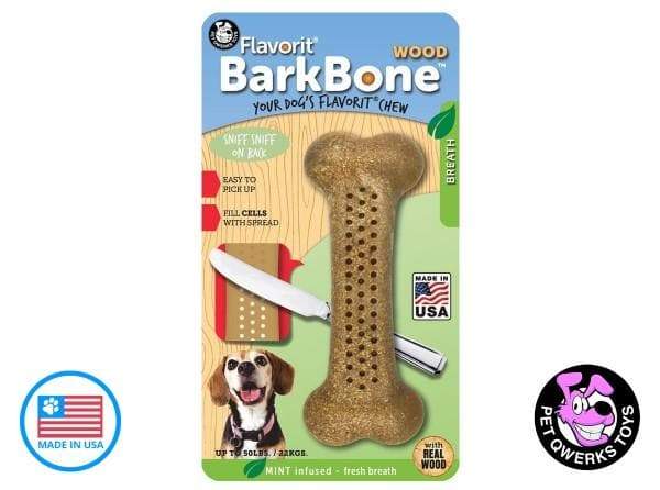 The Flavorit BarkBones by Pet Qwerks are the easy to pick up chew for dogs! Even though it works great with all kinds of spreads, dogs love it on its own too! The minty flavor is attractive to dogs and helps to curb bad breath. You can actually smell the goodness of the bone right through the package! The result is a double-yummy and drool-worthy bone your dog will love even without any spread! Giving your dog non-edible bones also massages their gums and provides scraping action on their teeth, much like a dental hygienist descaling the plaque from human teeth.