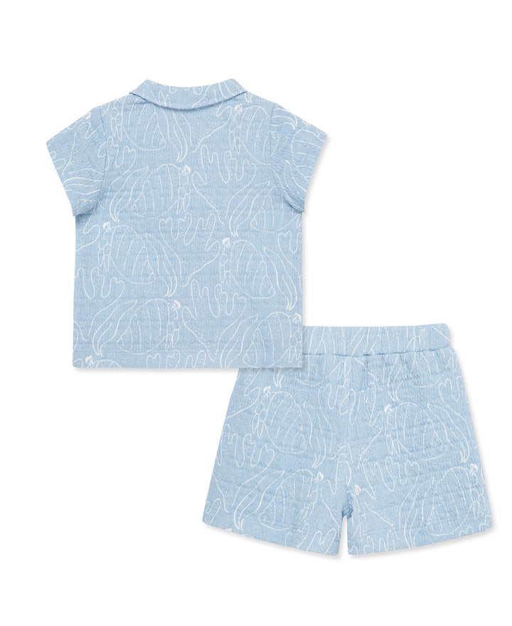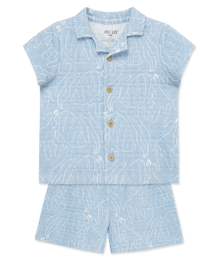- Dressing him up or down is a breeze with our baby boys' organic button down set, featuring the matching button down and shorts!