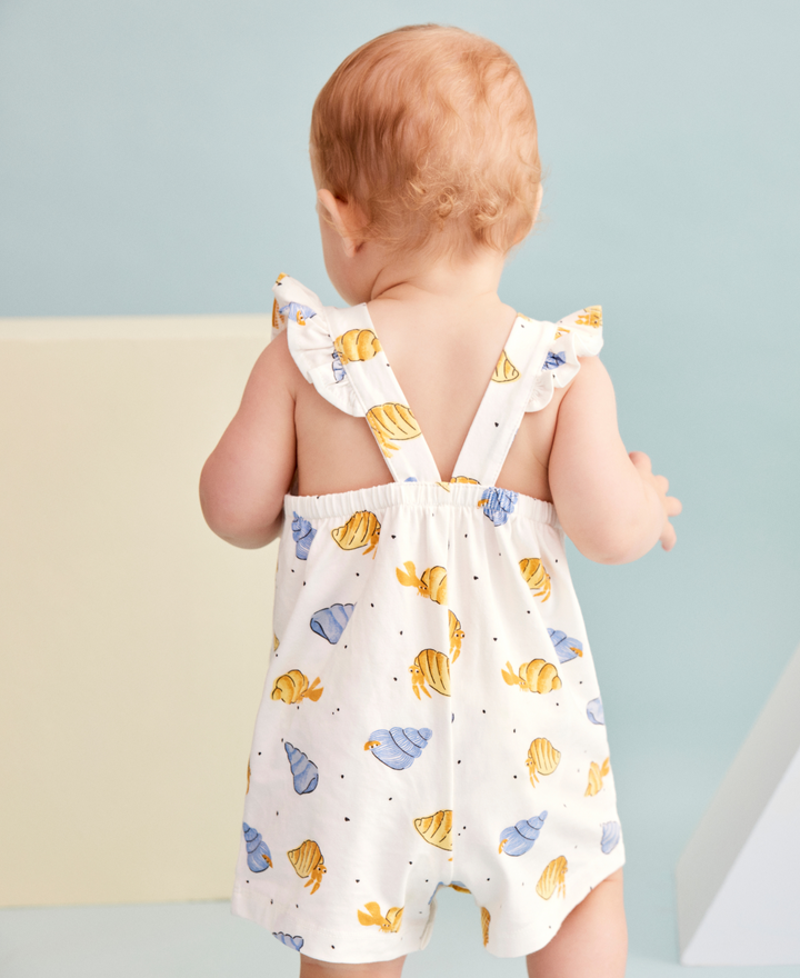 - She'll be selling seashells by the seashore in this baby girls' organic cotton romper!