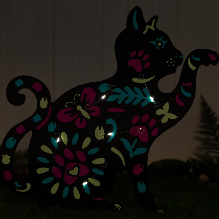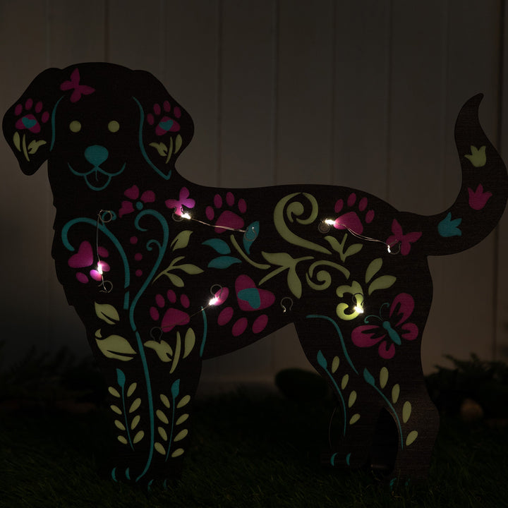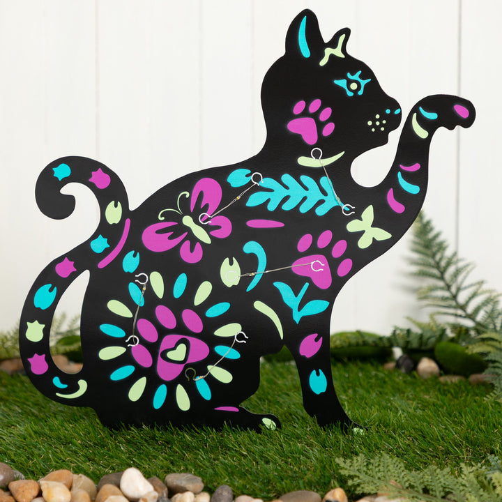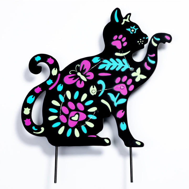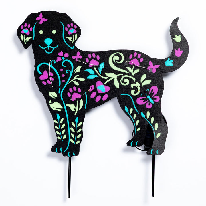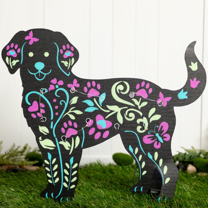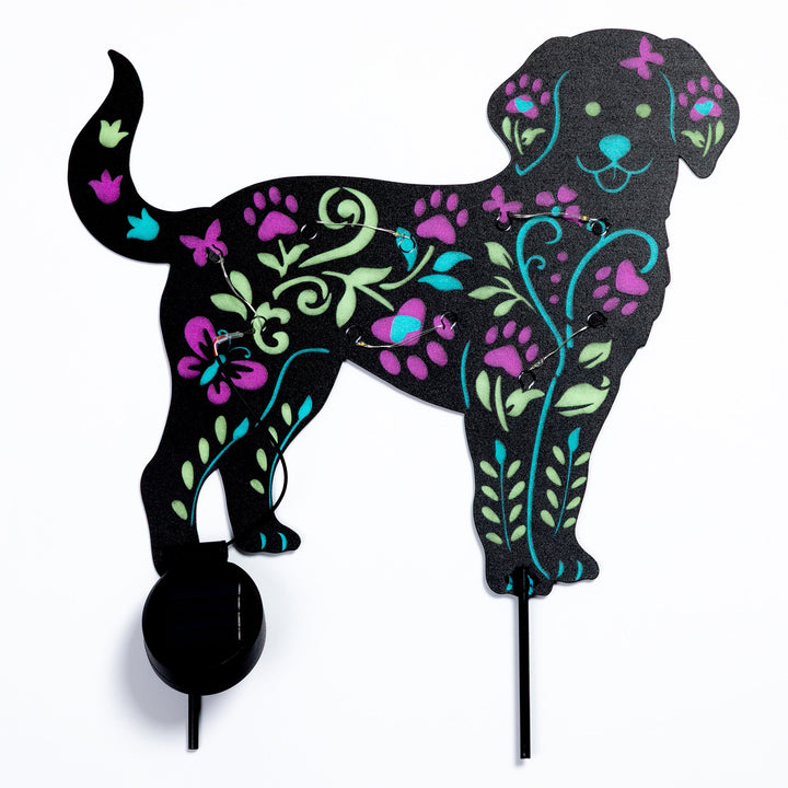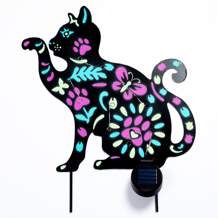 Brighten up your garden with these solar-powered pet silhouette garden stakes. Featuring colorful floral designs in the shape of a cat or dog, they soak up sunlight during the day and glow beautifully at night. A charming way to add personality and light to any outdoor space.