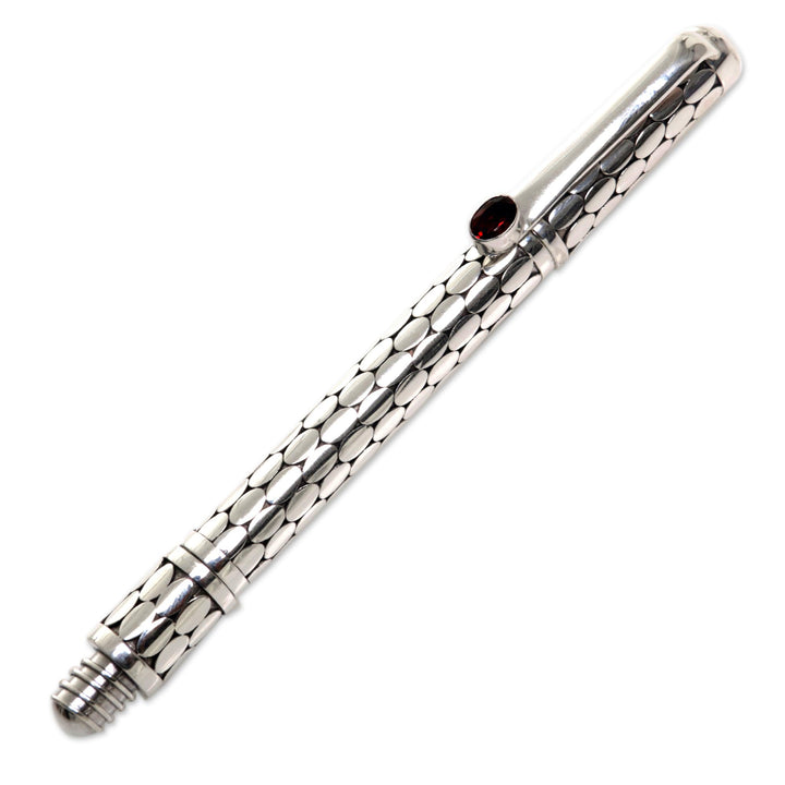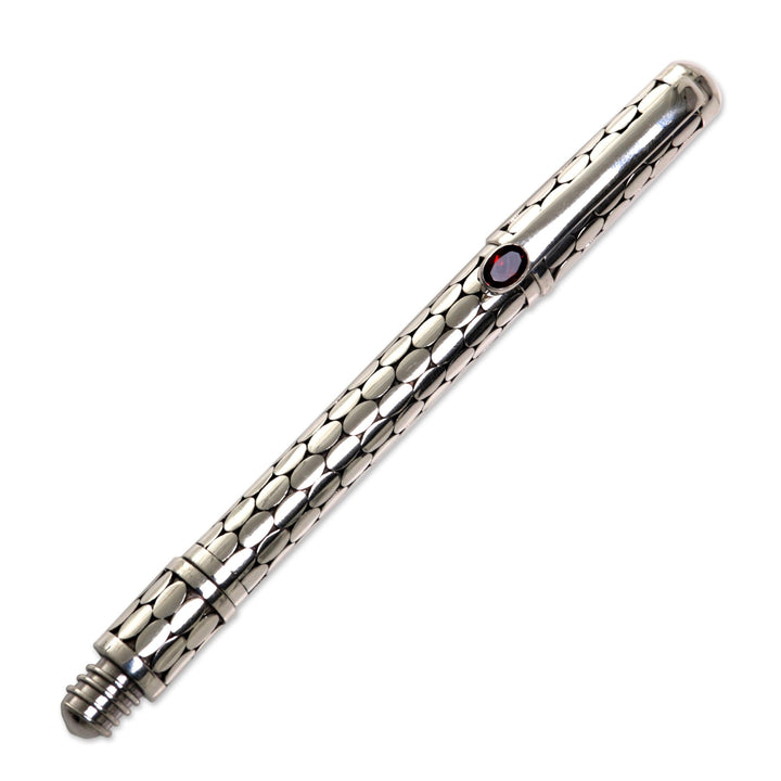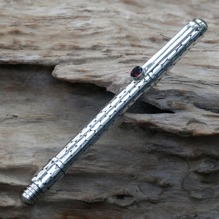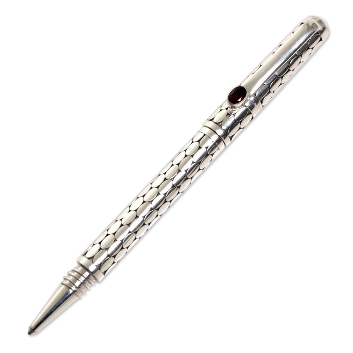 Garnet Gleam Handmade Indonesian Sterling Silver and Garnet Ballpoint Pen