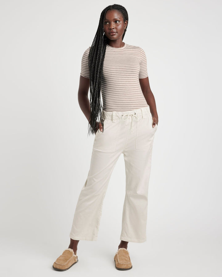 The Gianna Pant takes you through your day with incredible ease. It's roped drawstring waist feels relaxed while its straight leg flatters any shoe you pair it with. Herringbone tape adds a polished touch along the pockets. Tuck in your favorite lightweight layer or sweater.