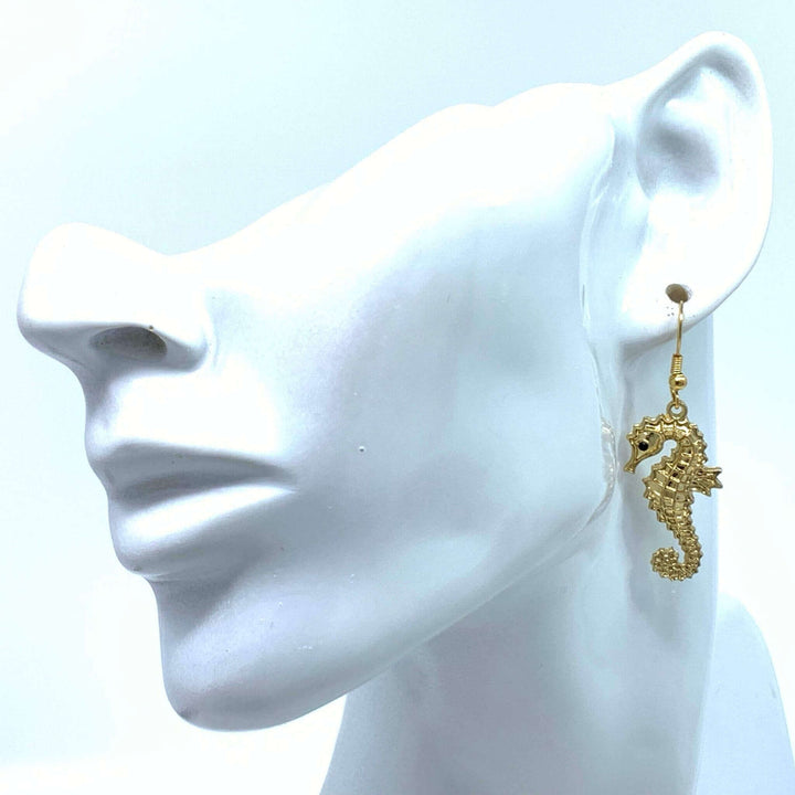 Our beach inspired Gold Seahorse Earrings capture the beauty of the sea and makes a perfect gift. These delightful little creatures will dangle playfully with every turn of your head. Suspended from a simple hook post, the seahorse design looks enchanting with its fine detailing. Seahorse dangle earrings will add a very pretty beach vibe to any outfit.