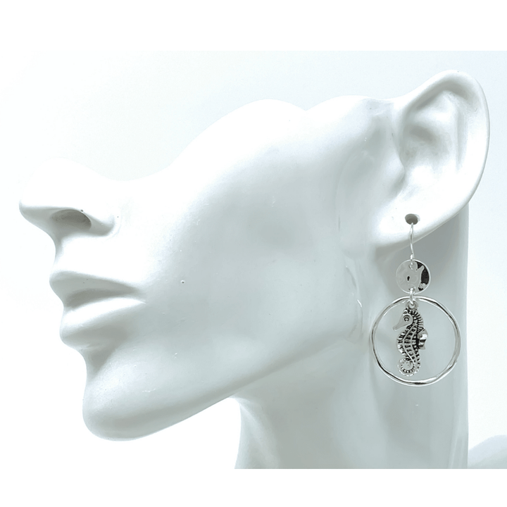 These silver seahorse earrings are guaranteed to please the seahorse jewelry lover in your life. A playful addition to any collection of beach jewelry, these silver seahorse earrings are adorable replicas of your favorite sea creatures. Wearing this playful pair of earrings is a fun way to imagine yourself at the seashore all year long.