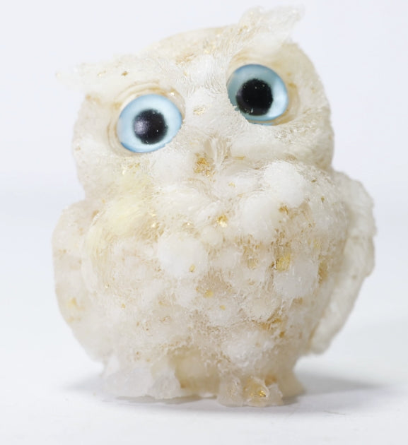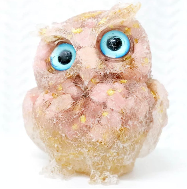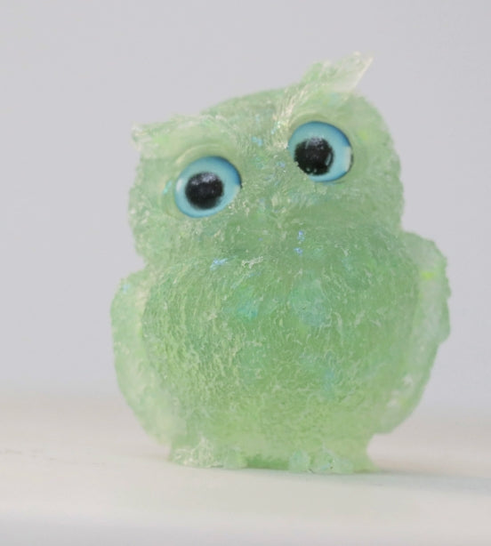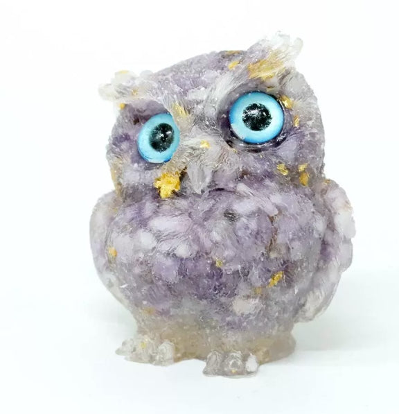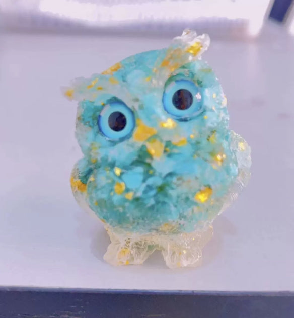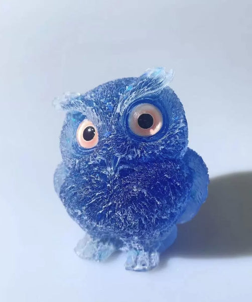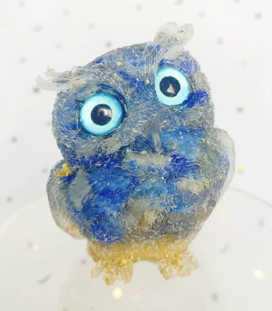 Handcrafted Resin Owl Sculpture with Crystal Details - Boho Home Decor, Desk Ornament, Unique Gift Idea