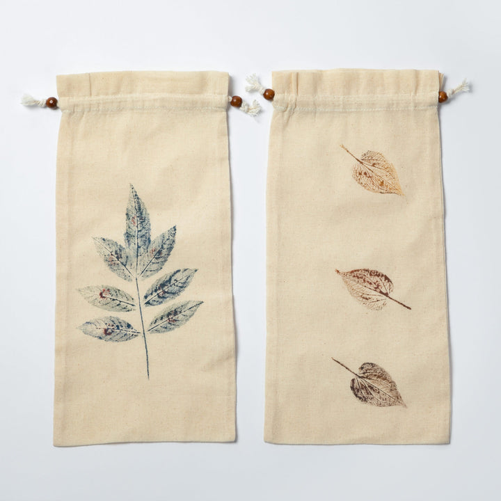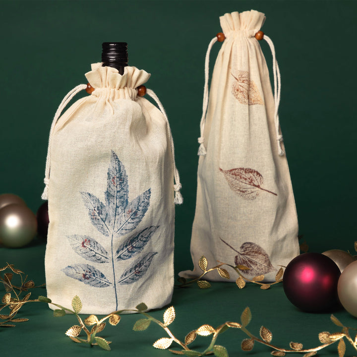 Add an eco-friendly, artisan-crafted touch to your gifting with a beautiful cotton wine bag duo. Each bag is handmade by skilled artisans in Thailand using 100% natural cotton, showcasing unique hand-printed leaf designs. Perfect for wine bottles or specialty gifts, these reusable bags are a sustainable and elegant way to celebrate while supporting fair trade practices.