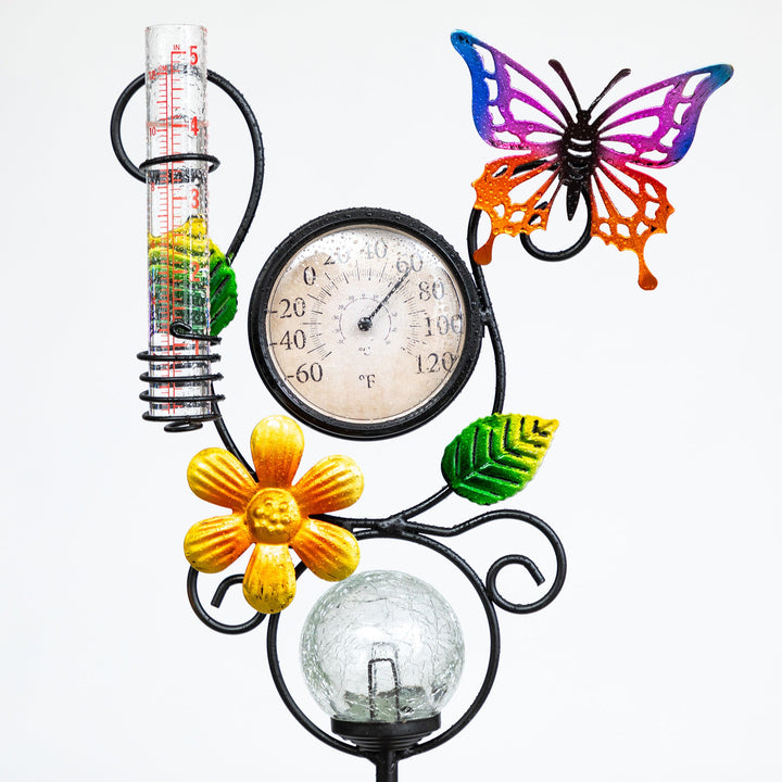 Harmony Rain Gauge Solar Thermometer Garden Stake