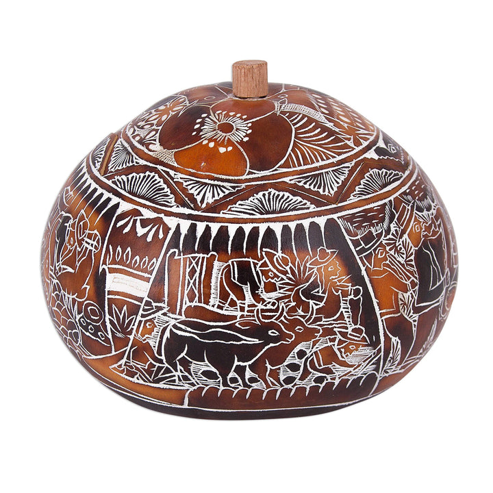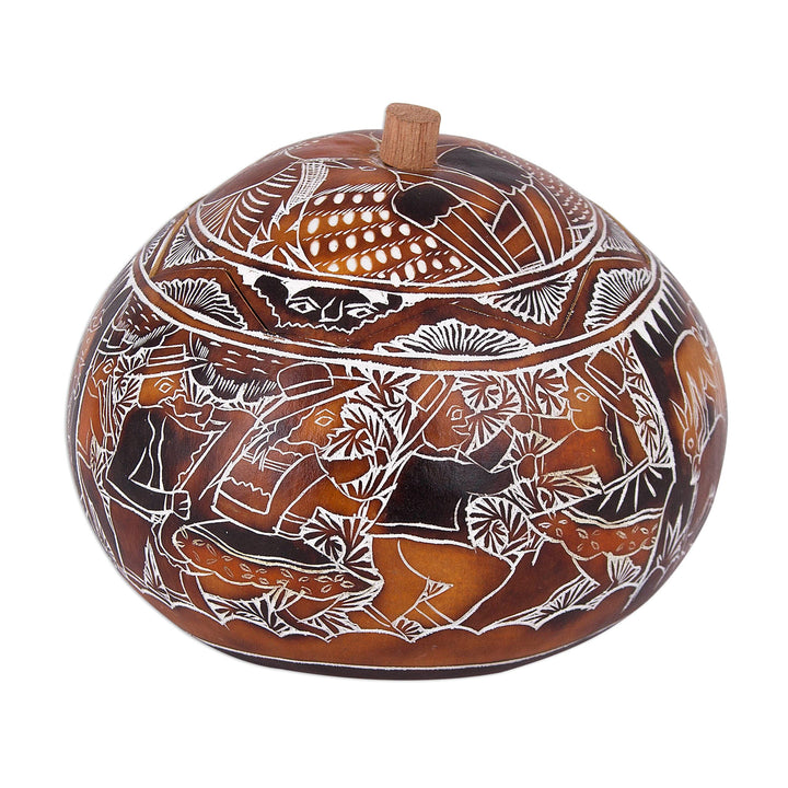 Teodolinda Seguil of Peru captures an Andean Harvest in this hand carved gourd decorative box. You'll appreciate the attention to detail in this exquisite work of art.