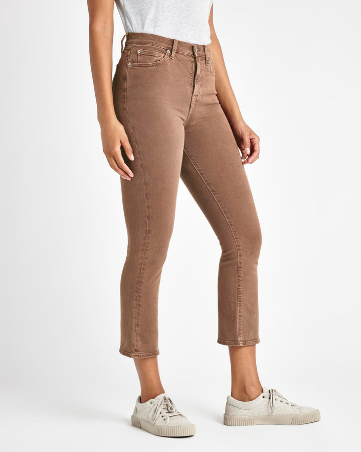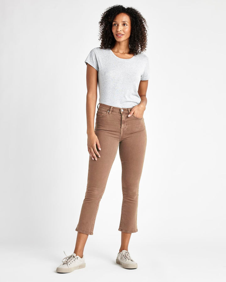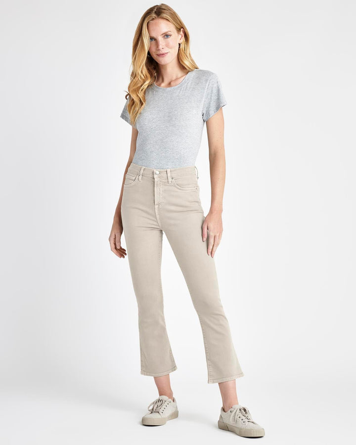 Upgrade your go-to jeans with our High Waisted Stretch Jean. These cropped flares work well with sneakers and ankle boots alike. Plus, we love the totally versatile hue and stretchy fabrication! Pair with tees, tops and jackets for all-season comfort.
