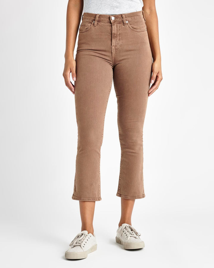 Upgrade your go-to jeans with our High Waisted Stretch Jean. These cropped flares work well with sneakers and ankle boots alike. Plus, we love the totally versatile hue and stretchy fabrication! Pair with tees, tops and jackets for all-season comfort.