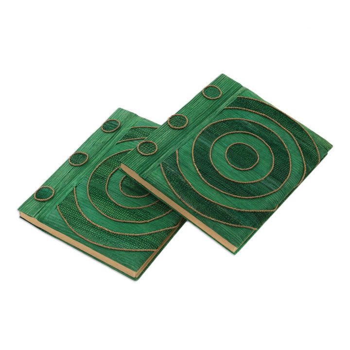 Tinted a deep turquoise, concentric circles take shape in natural fibers. Komang Sulaksana selects the textures of banana bark and agel grass cord for these beautiful notebooks. Each one has 50 pages of rice straw paper.
