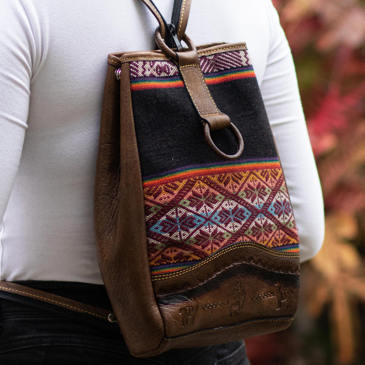 Inca Treasure Hand Loomed Wool and Leather Backpack