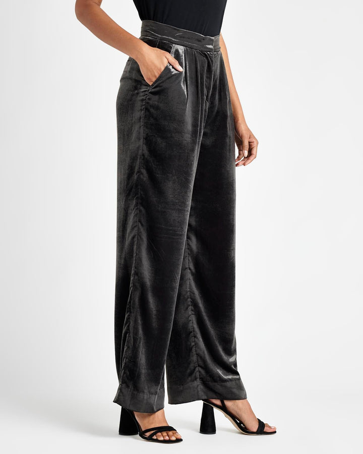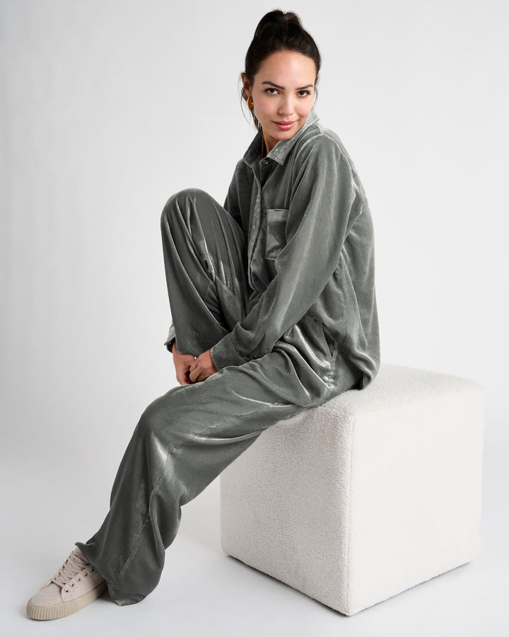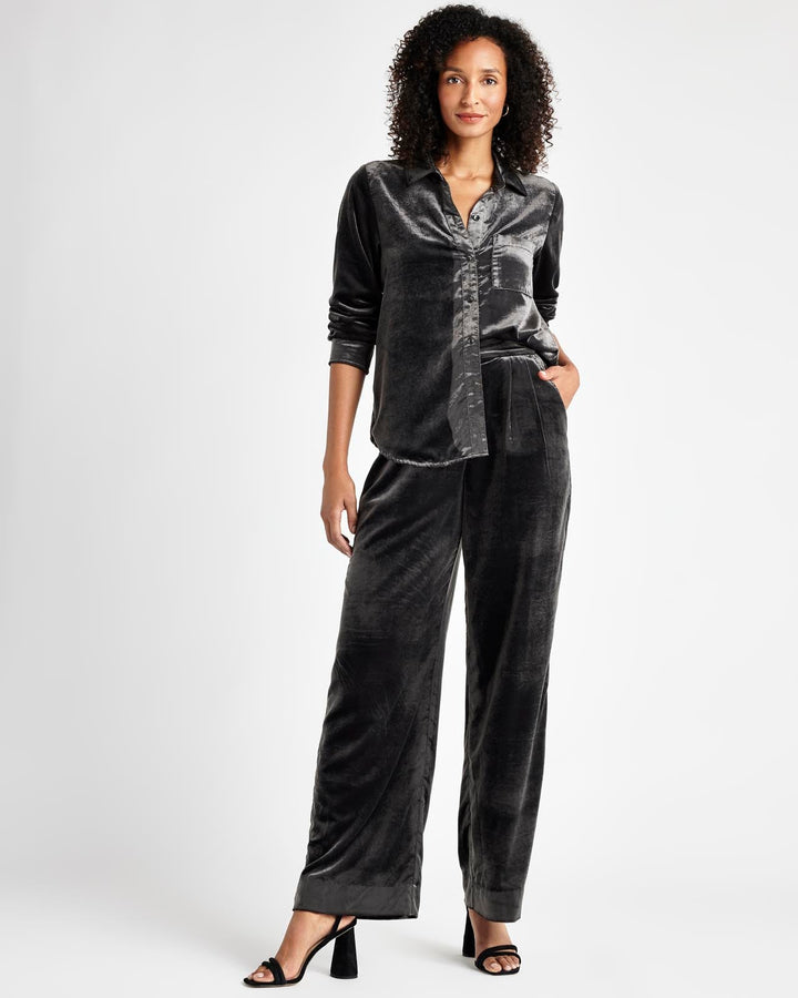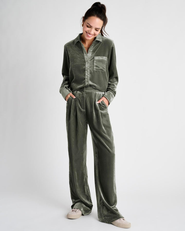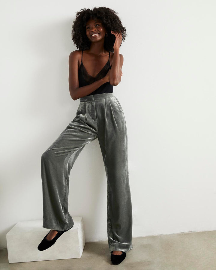 Cut from a ridiculously lush velvet, the Irene Velvet Pant adds so much polish whether you dress it up or down (seriously, it even looks good with sneakers). Front pleats, welt pockets and a refined wide-leg silhouette give it that tailored trouser appeal. While its incredible velvet drape is still comfortable enough for all-day wear. Go head-to-toe glam with the matching Irene Velvet Button Down.