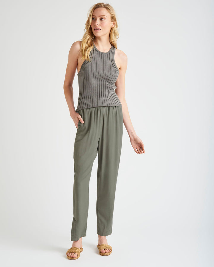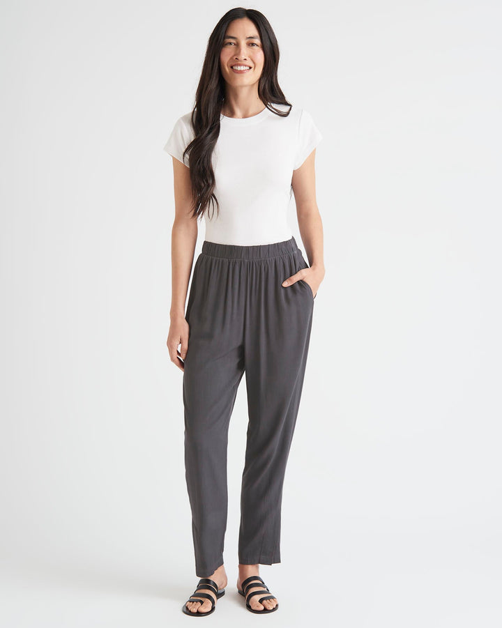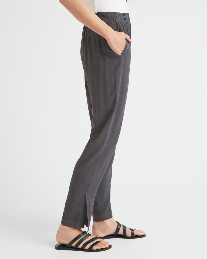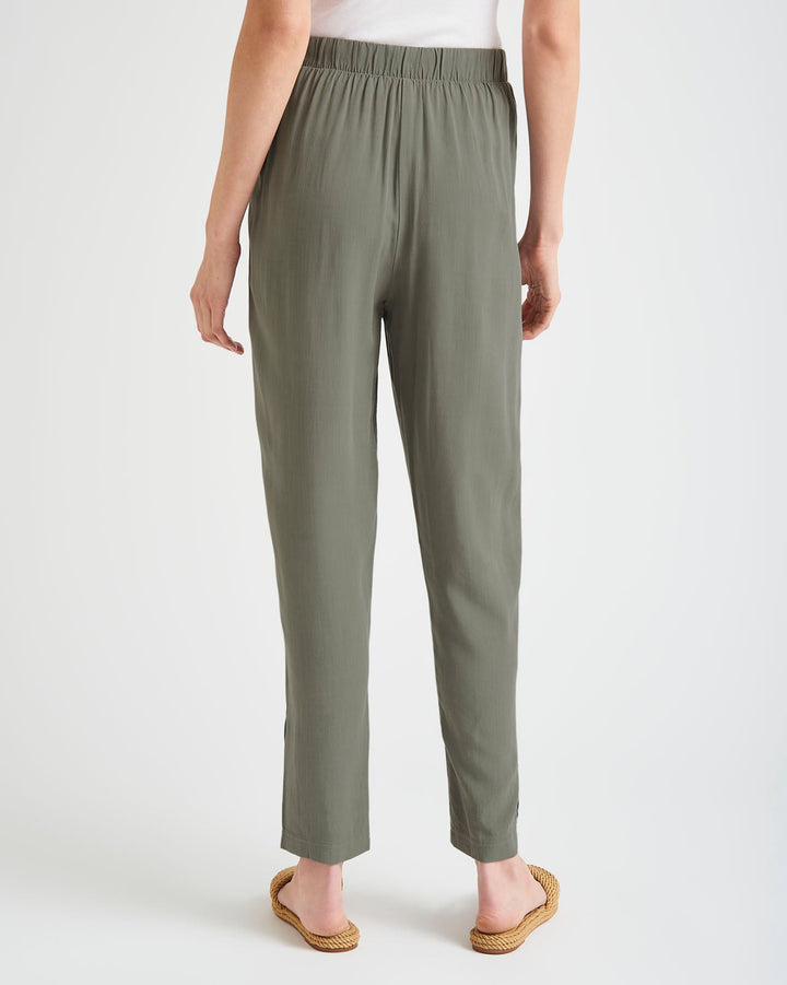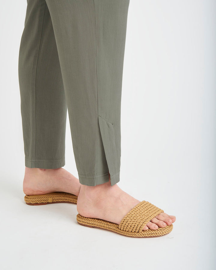 Designed to feel more dressed up, while still being as comfortable as your favorite joggers, our Kylie Straight Leg Pant will become an instant fave. This pant has an elastic waist, side pockets, ankle slits and an easy fit which makes them perfect for all day wear.
