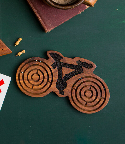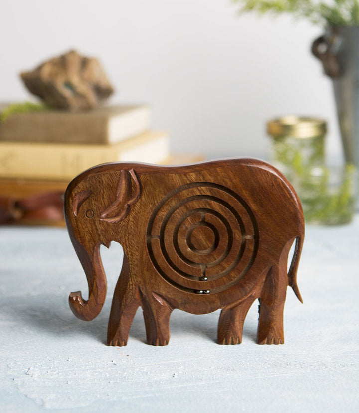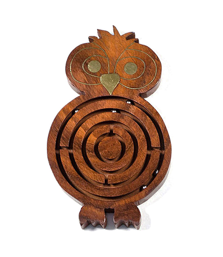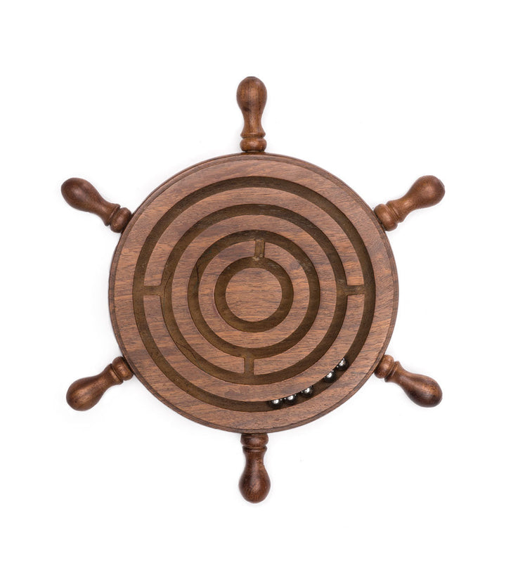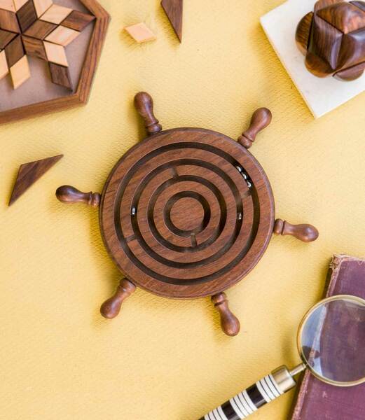 Keep your little one busy, with a fun game. Ethically sourced Indian Rosewood labyrinth game, played by maneuvering metal beads through the hand carved maze.