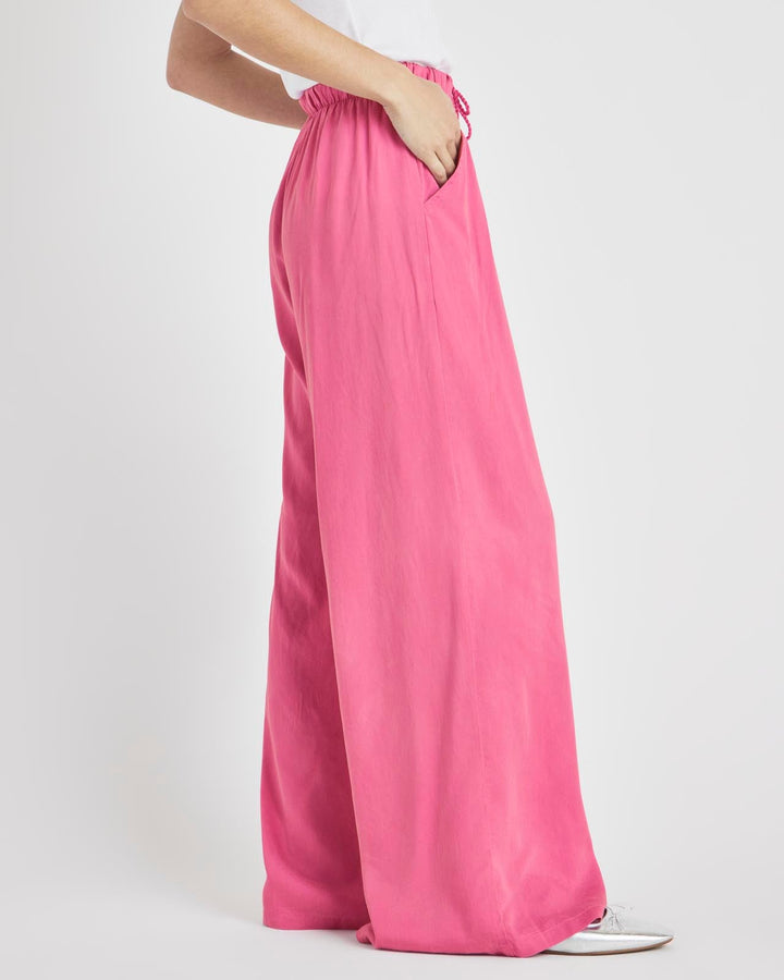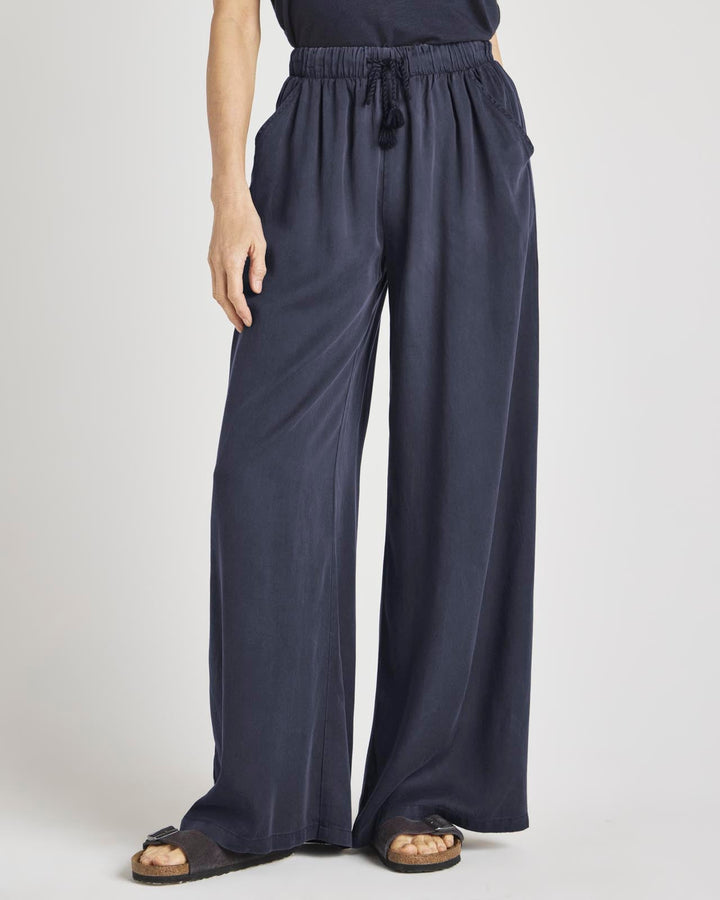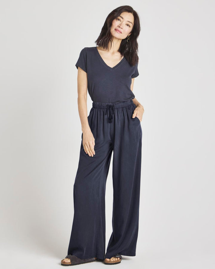This voluminous sateen pant will be an instant spring favorite. Made in a playful palazzo silhouette, the Lainey Wide Leg Pant features a stretchy drawstring waist with charming tassel ties. The ultra wide leg silhouette is both comfy and chic. Tuck in tanks, tees and even lightweight knits for the ultimate spring look.