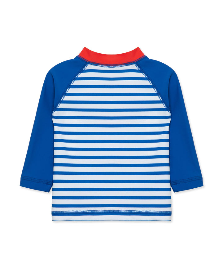 - Claw your way to the beach in our boys' lobster and stripe long-sleeve rashguard crafted in UPF 50+ quick-drying fabric! Complete the set with our coordinating boys' swim trunks.