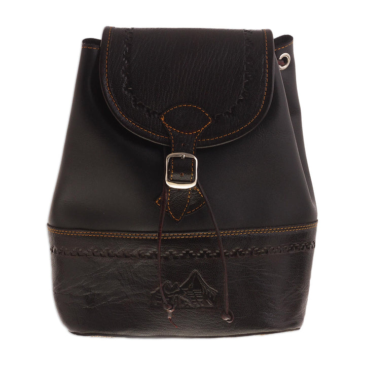 Machu Picchu Journey Handcrafted Leather Backpack in Black from Peru