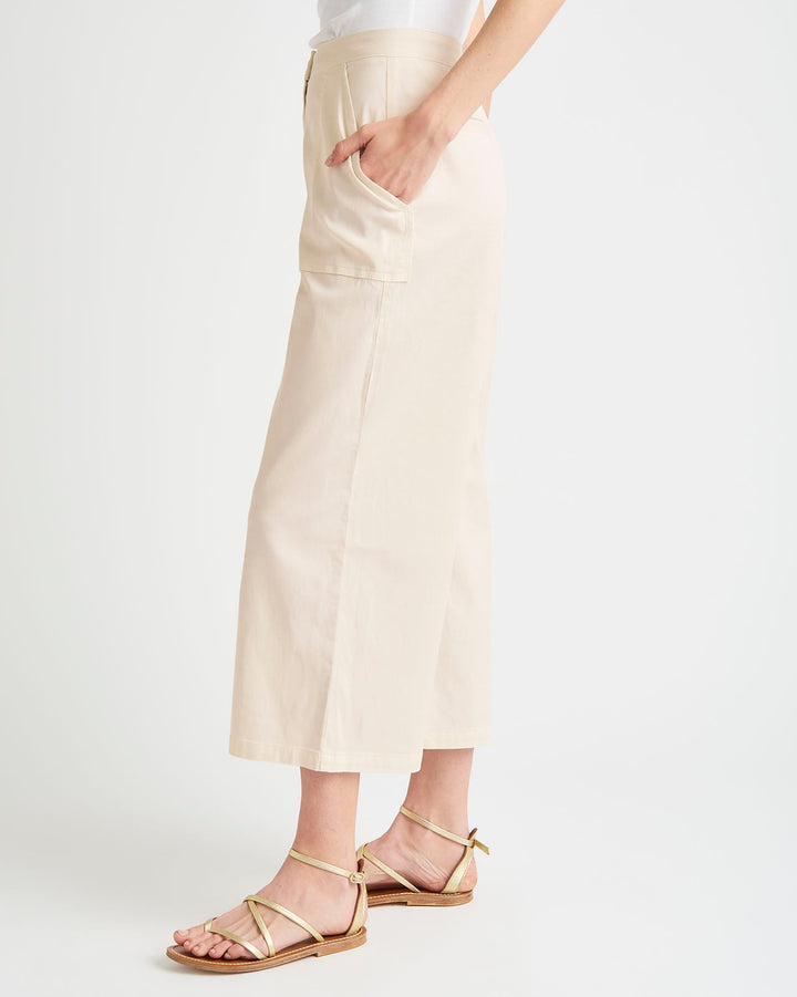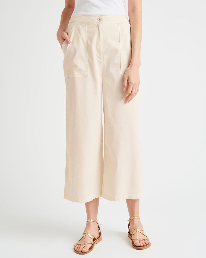 Looking for the ultimate warm weather pant? Meet our Margaret Wide Crop Trouser. With a functional zipper and button fly front closure, these pants feel like your favorite jeans but with a bit more stretch. They were designed to be high-waisted and cropped, so we love to style them with a simple tank or tee and our favorite sandals.