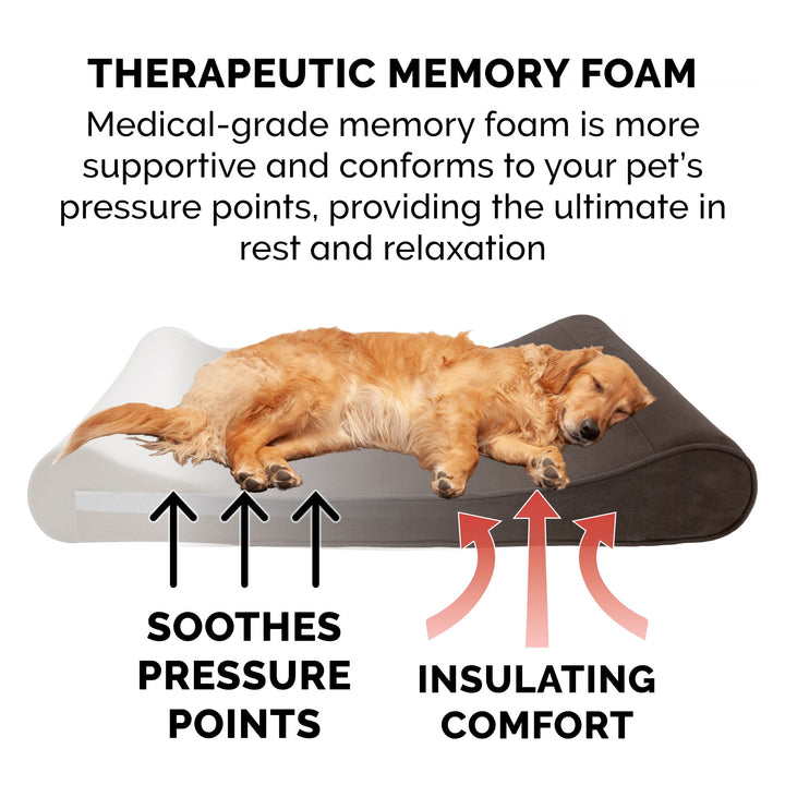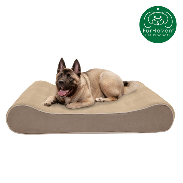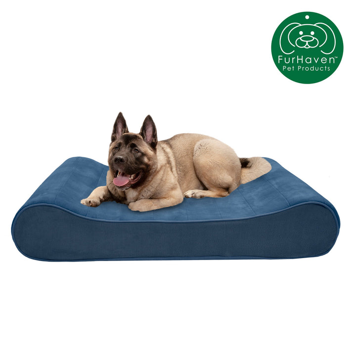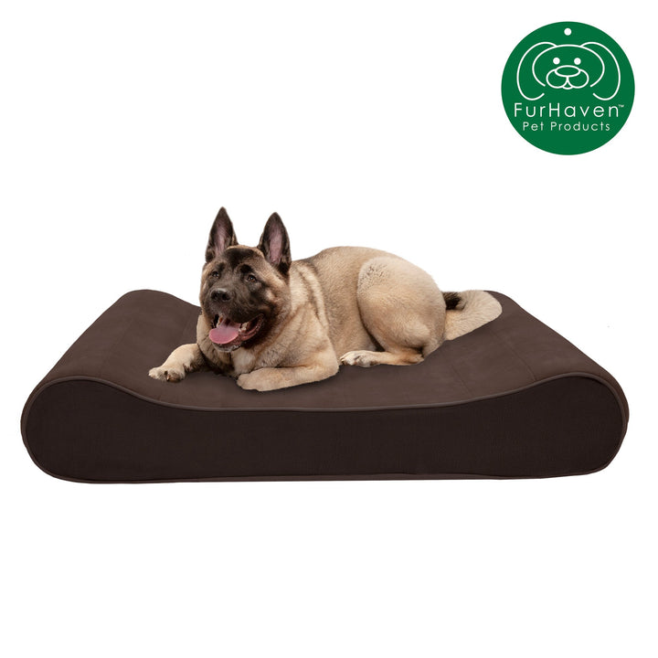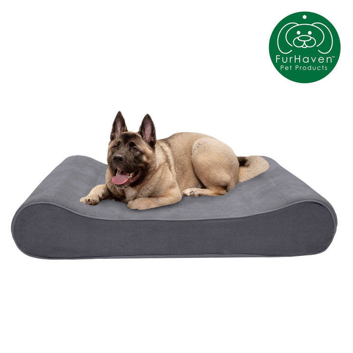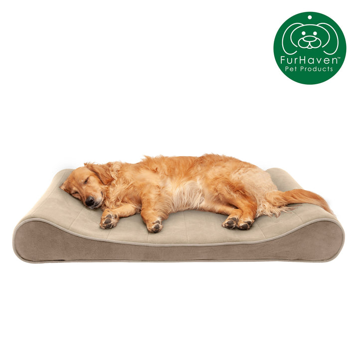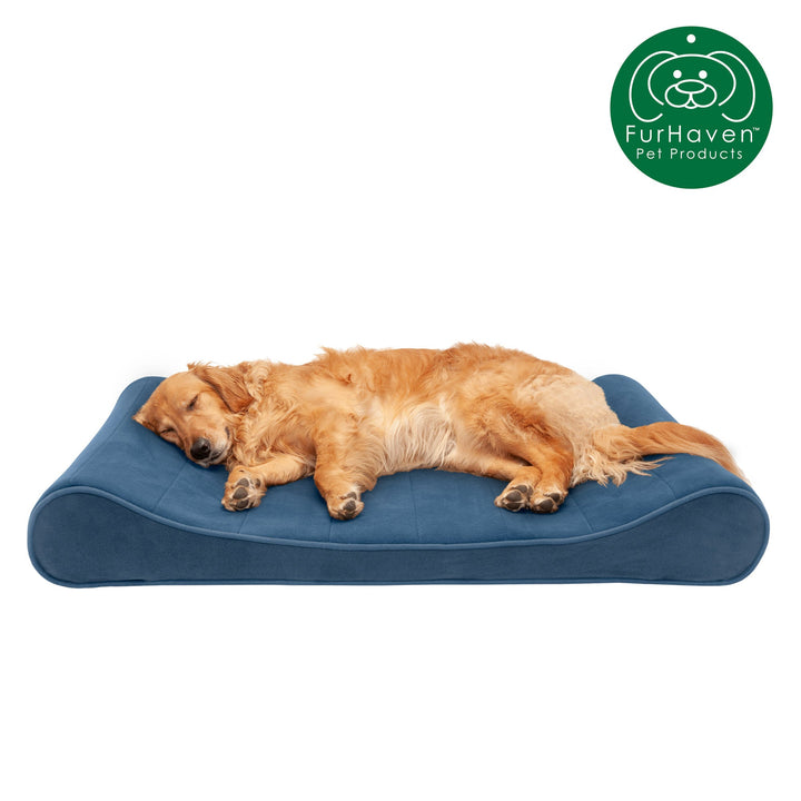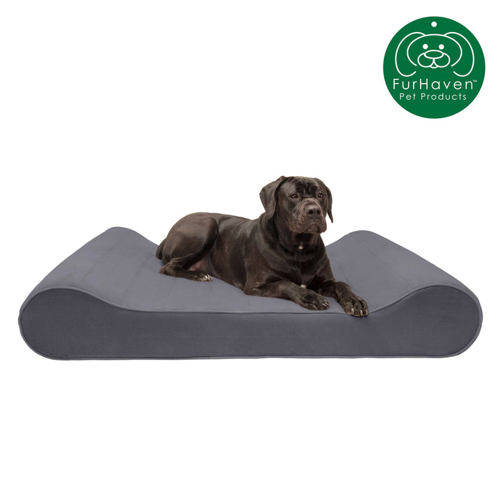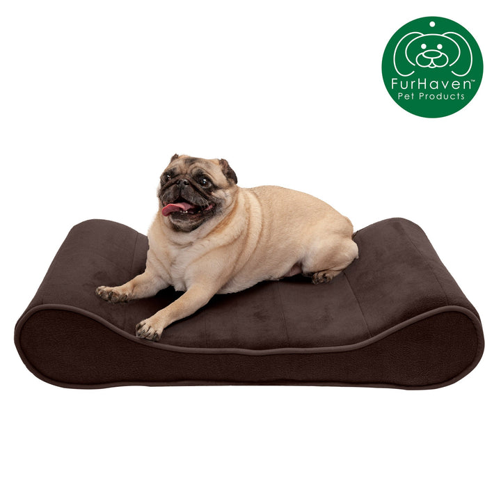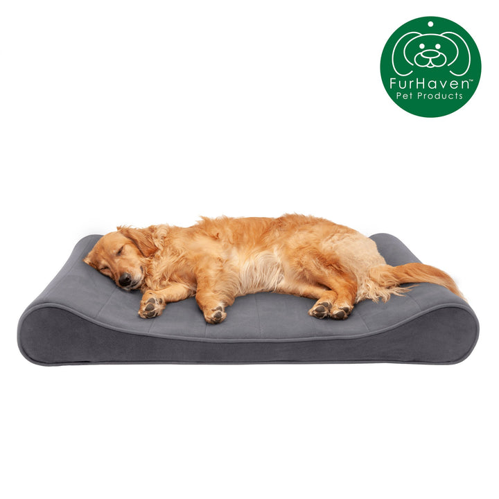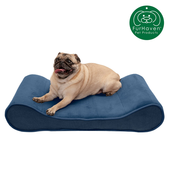Give your best friend the comfort and support they need with a FurHaven Microvelvet Luxe Lounger Pet Bed. This ergonomically-designed pet bed is contoured to cradle your pet's body and provide therapeutic back and neck support. Luxe Lounger pet beds feature memory foam topping, designed to work with your pet's weight and to contour to their body, providing better overall support and relief from painful muscles and joint discomfort. Quilted, microvelvet sleep surface is lightly padded for the ultimate "cozy" experience.