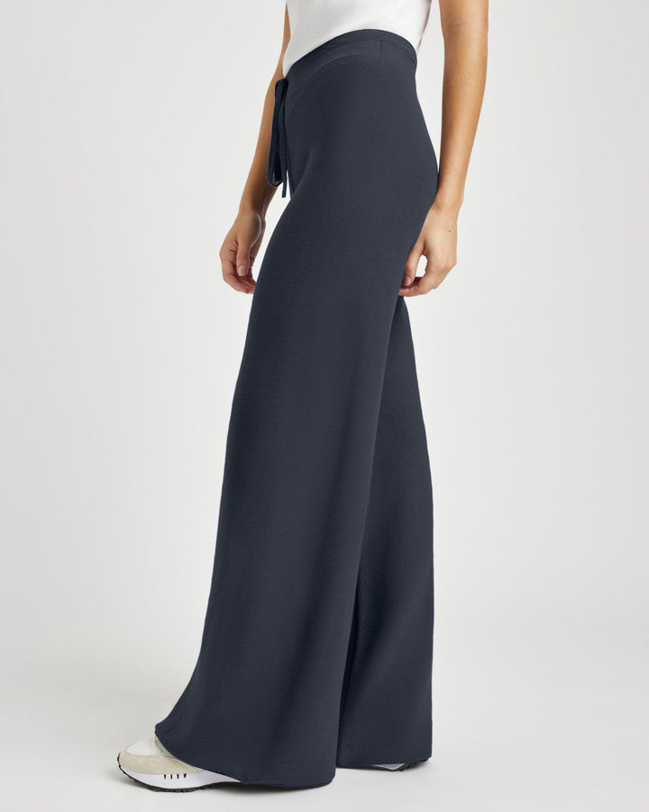 Wrap yourself in comfort with the Michelle Sweater Pant. Crafted from a cotton blend knit, these wide-leg pants feature a stretch waistband and a convenient drawstring, ensuring a snug yet flexible fit that moves with you. Perfect for a cozy day at home or a casual outing, these pants are your go-to for a polished, relaxed look. Pair them with the matching Michelle Sweater for a matching ensemble.