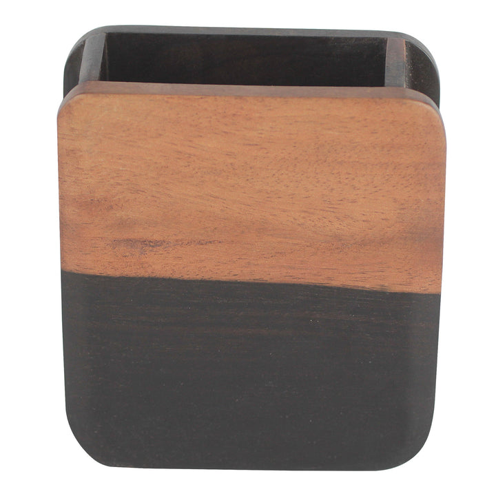 Modern Nature Hand Carved Ebony Wood Rounded Rectangle Pencil Holder