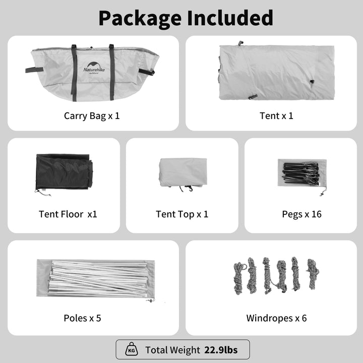 With a skirt at the bottom of the tent to prevent cold winds from entering the tent. With 4 doors and several windows on the top and sides to maintain air circulation. It is also equipped with a chimney hole inside the tent.