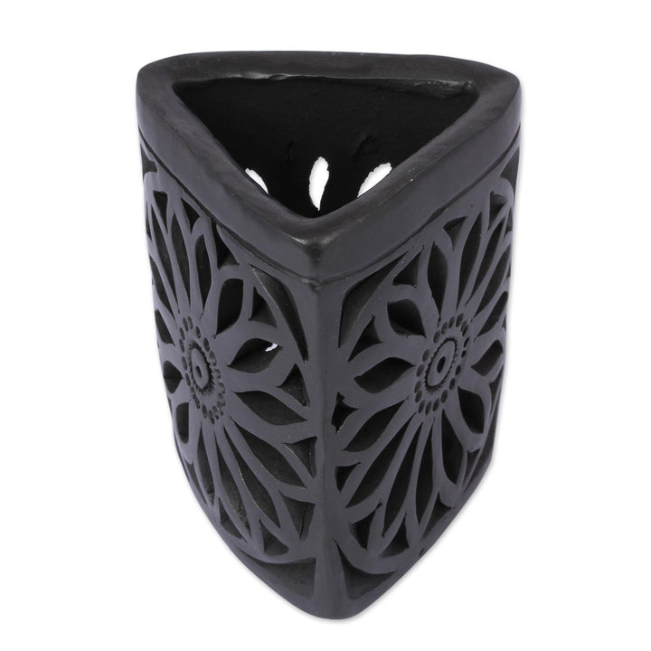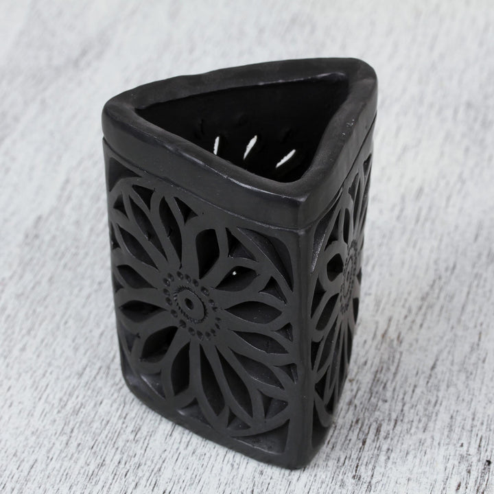 Oaxacan Dusk Oaxaca Barro Negro Triangular Floral Ceramic Pencil Holder