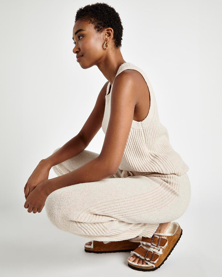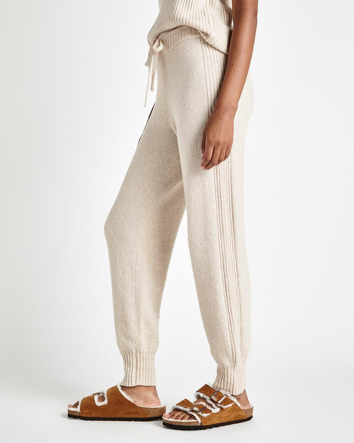 Like a blanket you can wear, you'll never want to take off our Ophelia Sweater Jogger. It's made from the same fuzzy sweater blend you love to wrap up in. It's topped with a drawstring waist and finished with cozy elongated ribbed cuffs.