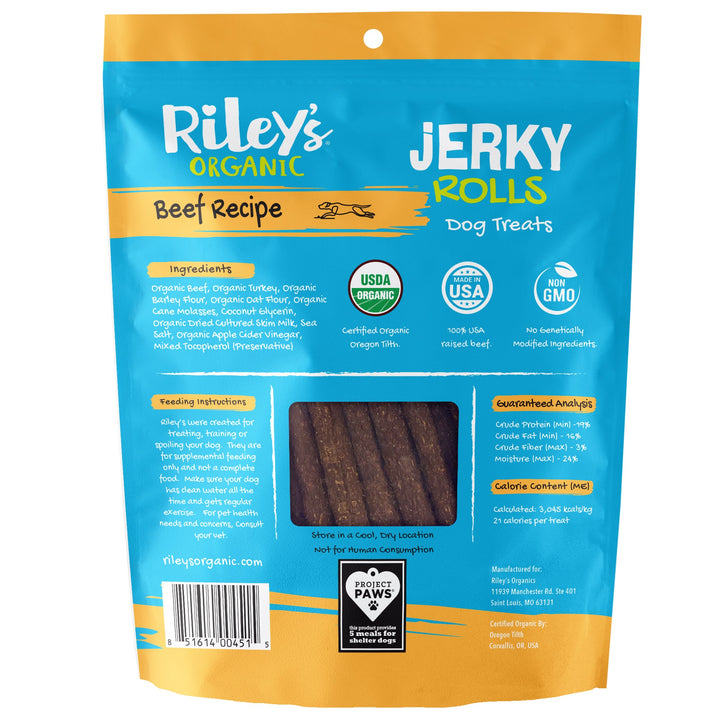 Riley’s Organic Beef Jerky Rolls are the perfect way to return the love your dog gives you every day. These Organic Certified treats are packed with tasty beef. These chewy treats are fun for your pet to eat. Dogs of all sizes give these delicious treats the four-paws vote of approval. When looking to give your best friend the very best, make it Riley’s.