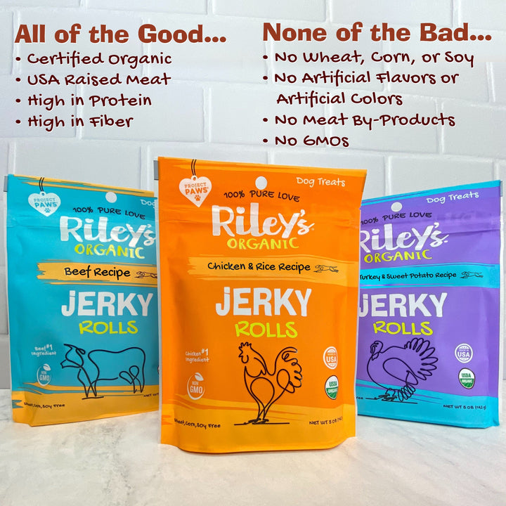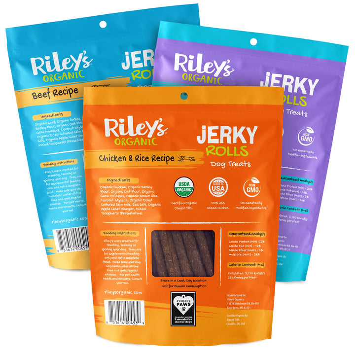 Show your dog how much you love them with these organic jerky rolls. These tender dog treats are made from only certified organic ingredients. The recipe was specifically made to offer dogs something that both tastes good and is good for them.