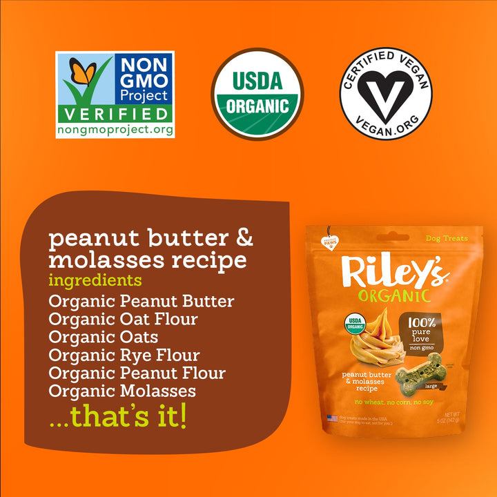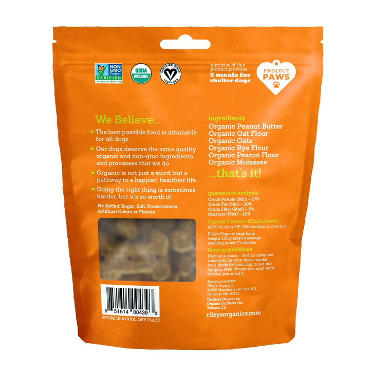 Our limited ingredient, USDA Certified Organic Peanut Butter & Molasses Dog Biscuits are irresistible! Not only are they delicious, they’re also a good source of quality fats, protein, antioxidants, and vitamins B and E. The baked goodness comes through not only in the flavor, but also in the human-grade ingredients that let you know this is the perfect treat for your dog.