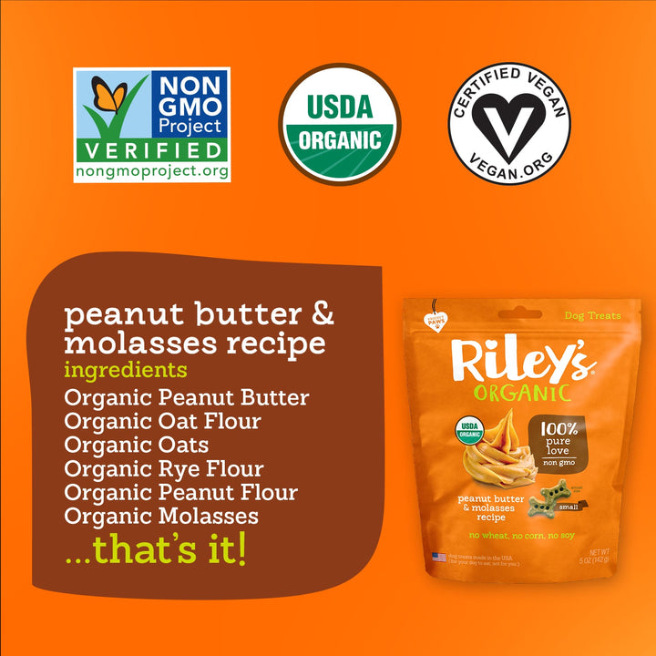 Our limited ingredient, USDA Certified Organic Peanut Butter & Molasses Dog Biscuits are irresistible! Not only are they delicious, they’re also a good source of quality fats, protein, antioxidants, and vitamins B and E. The baked goodness comes through not only in the flavor, but also in the human-grade ingredients that let you know this is the perfect treat for your dog.